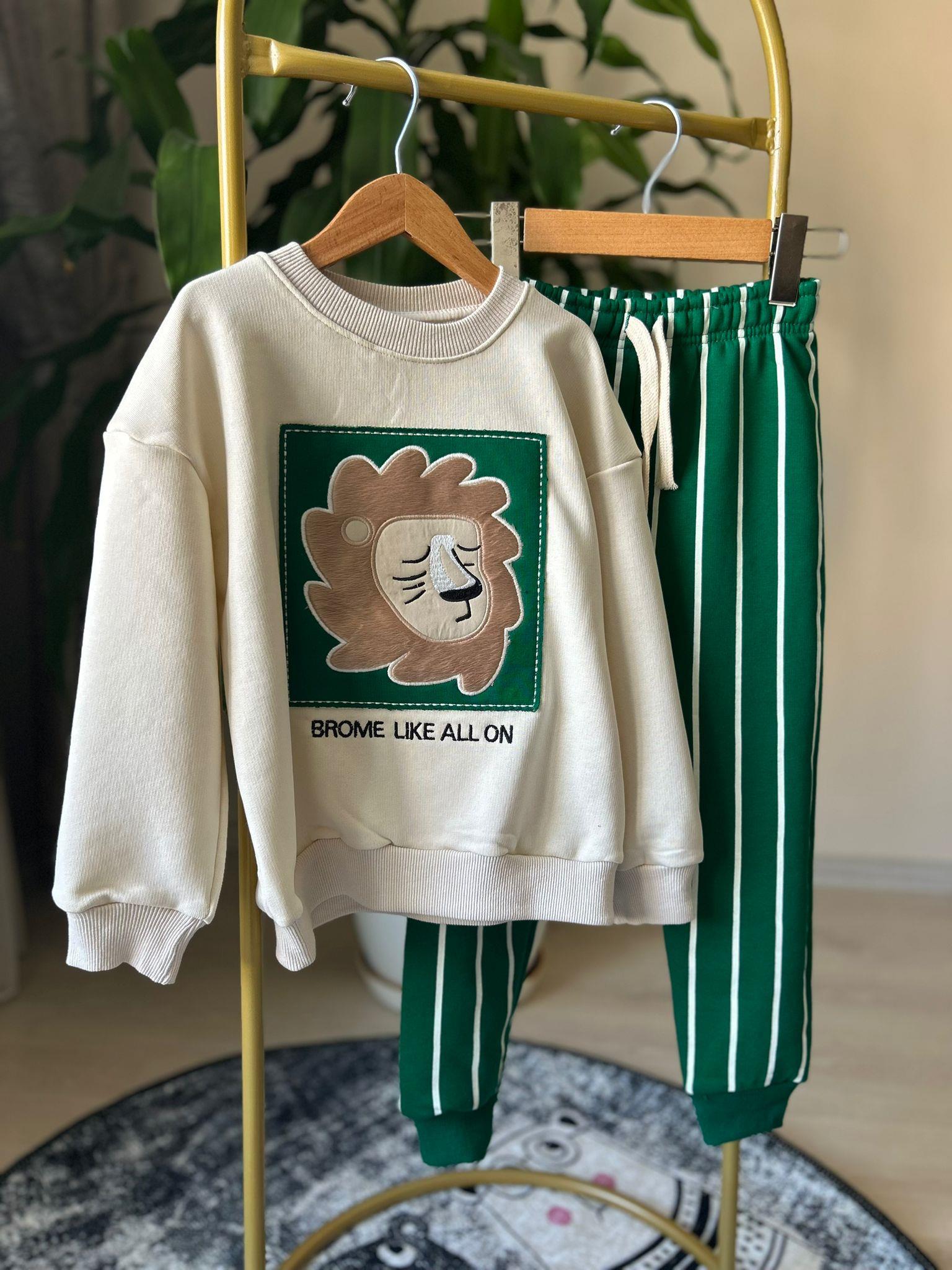 Aslan Kral İşlemeli Çizgili Yeşil Eşofman Takımı